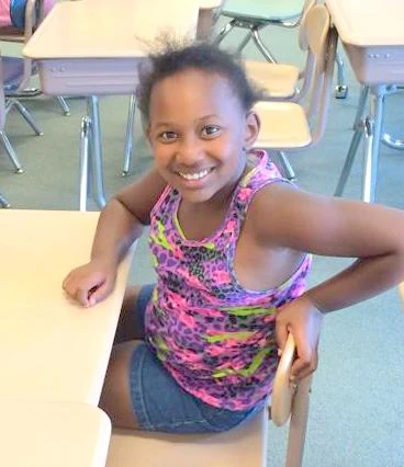 Alexus in the classroom thinking about the A-B-Cs and literacy.