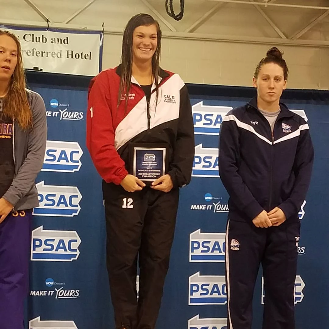 Jade, a 2-time champion swimmer in 200 breastroke from CalU. Photo in her senior season, 2017.